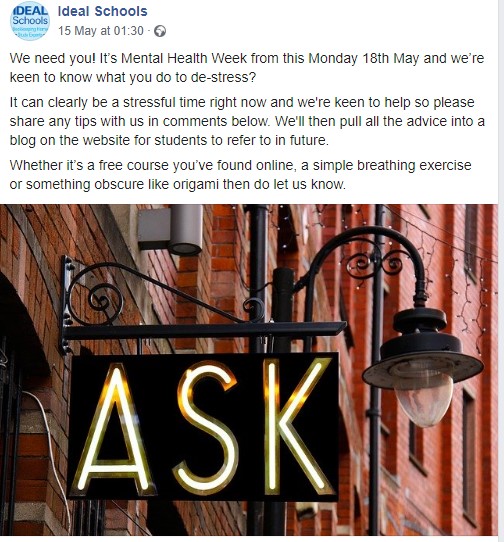The third week of May each year means the start of Mental Health Awareness Week which is organised by The Mental Health Foundation, https://www.mentalhealth.org.uk/campaigns/mental-health-awareness-week.